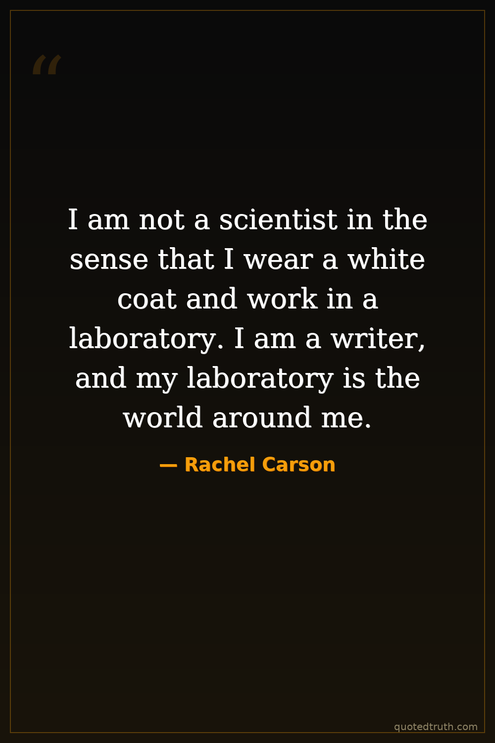 I am not a scientist in the sense that I wear a white coat and work in a laboratory. I am a writer, and my laboratory is the world around me.