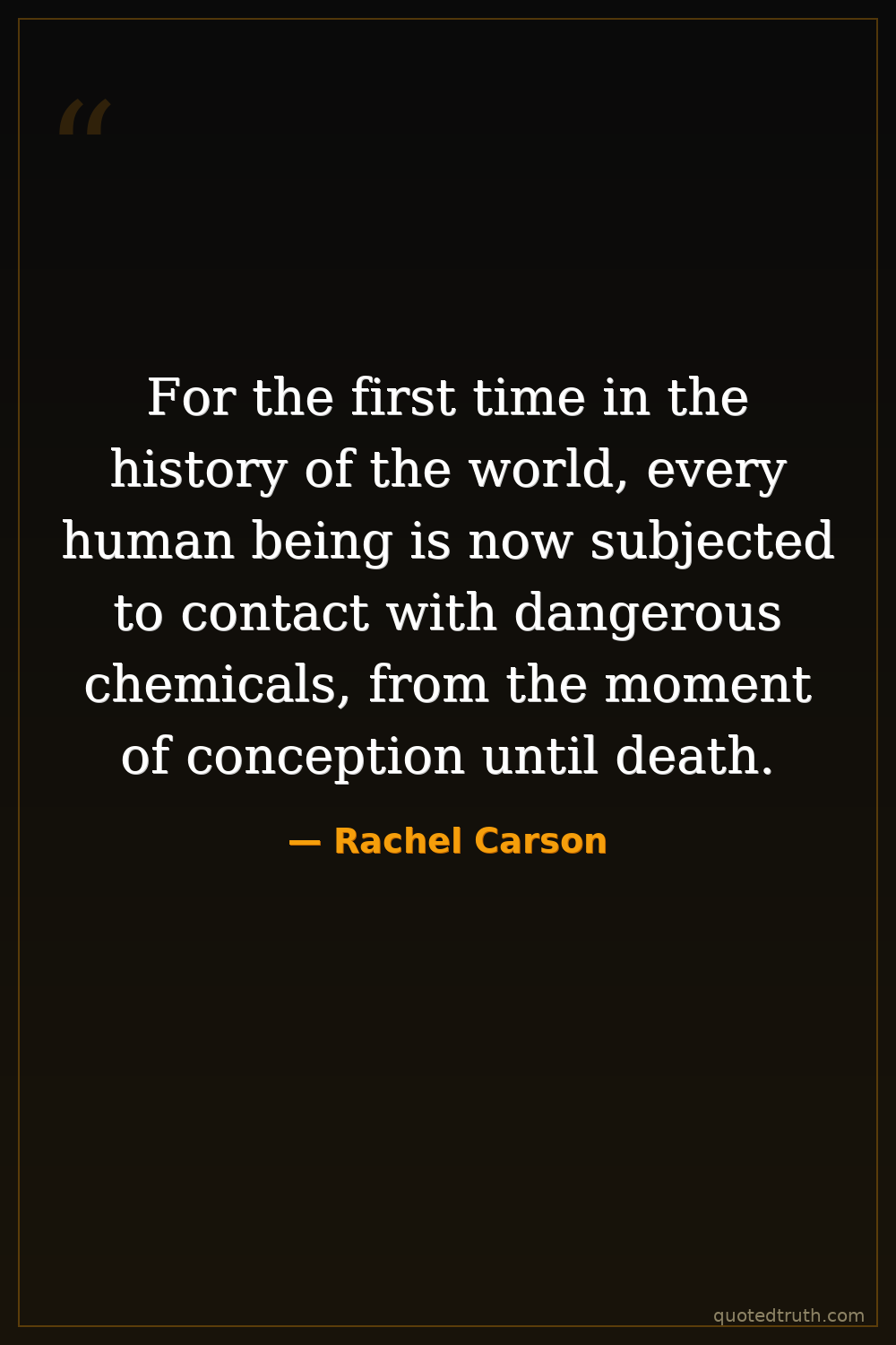 For the first time in the history of the world, every human being is now subjected to contact with dangerous chemicals, from the moment of conception until death.