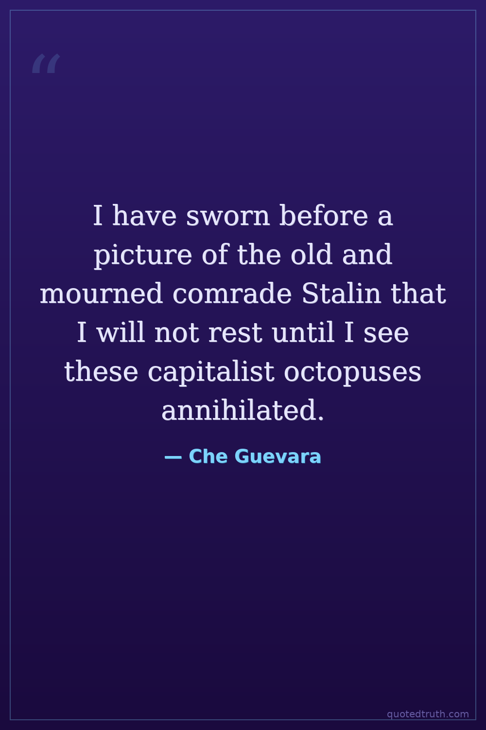 I have sworn before a picture of the old and mourned comrade Stalin that I will not rest until I see these capitalist octopuses annihilated.