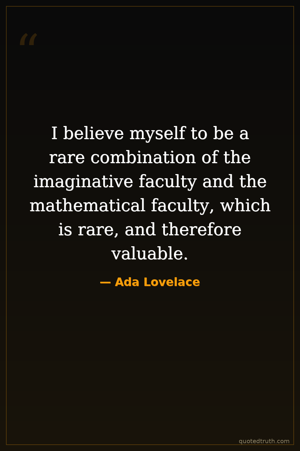 I believe myself to be a rare combination of the imaginative faculty and the mathematical faculty, which is rare, and therefore valuable.