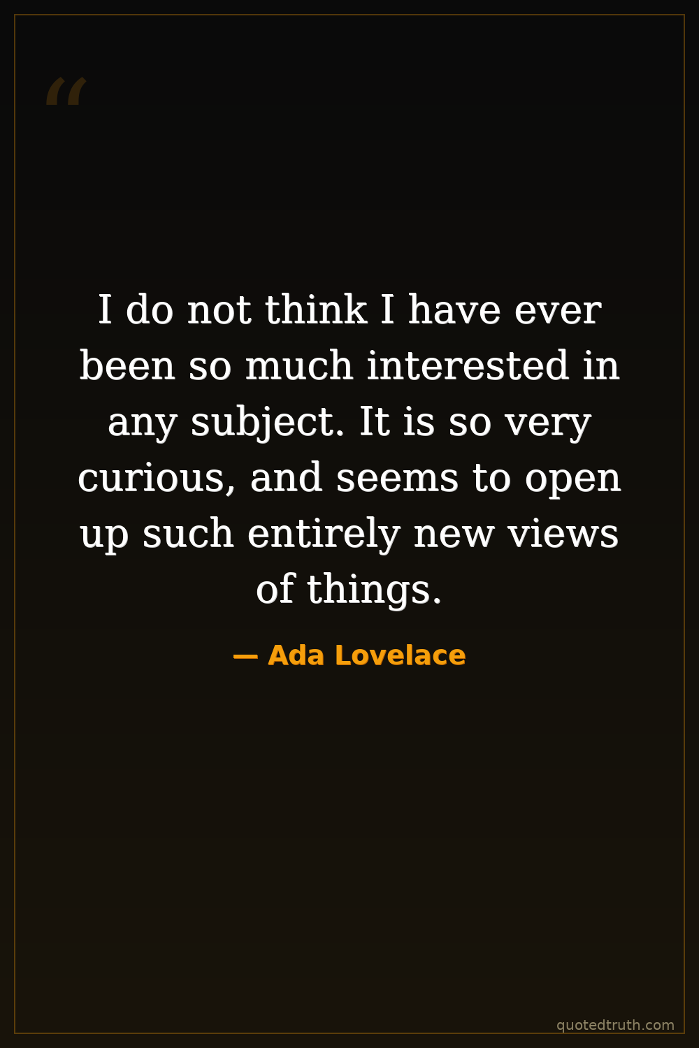 I do not think I have ever been so much interested in any subject. It is so very curious, and seems to open up such entirely new views of things.