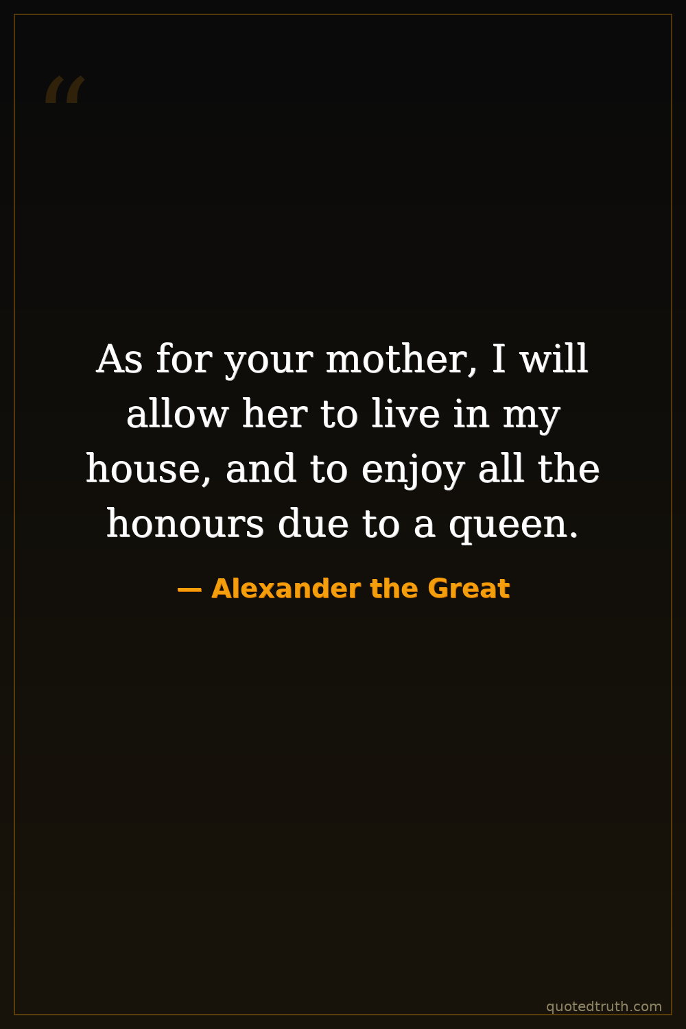As for your mother, I will allow her to live in my house, and to enjoy all the honours due to a queen.