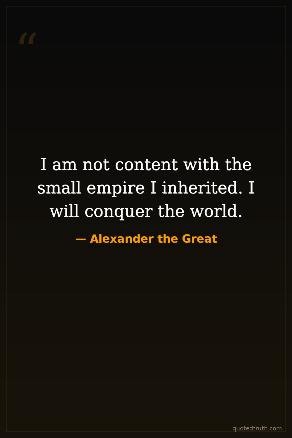 I am not content with the small empire I inherited. I will conquer the world.