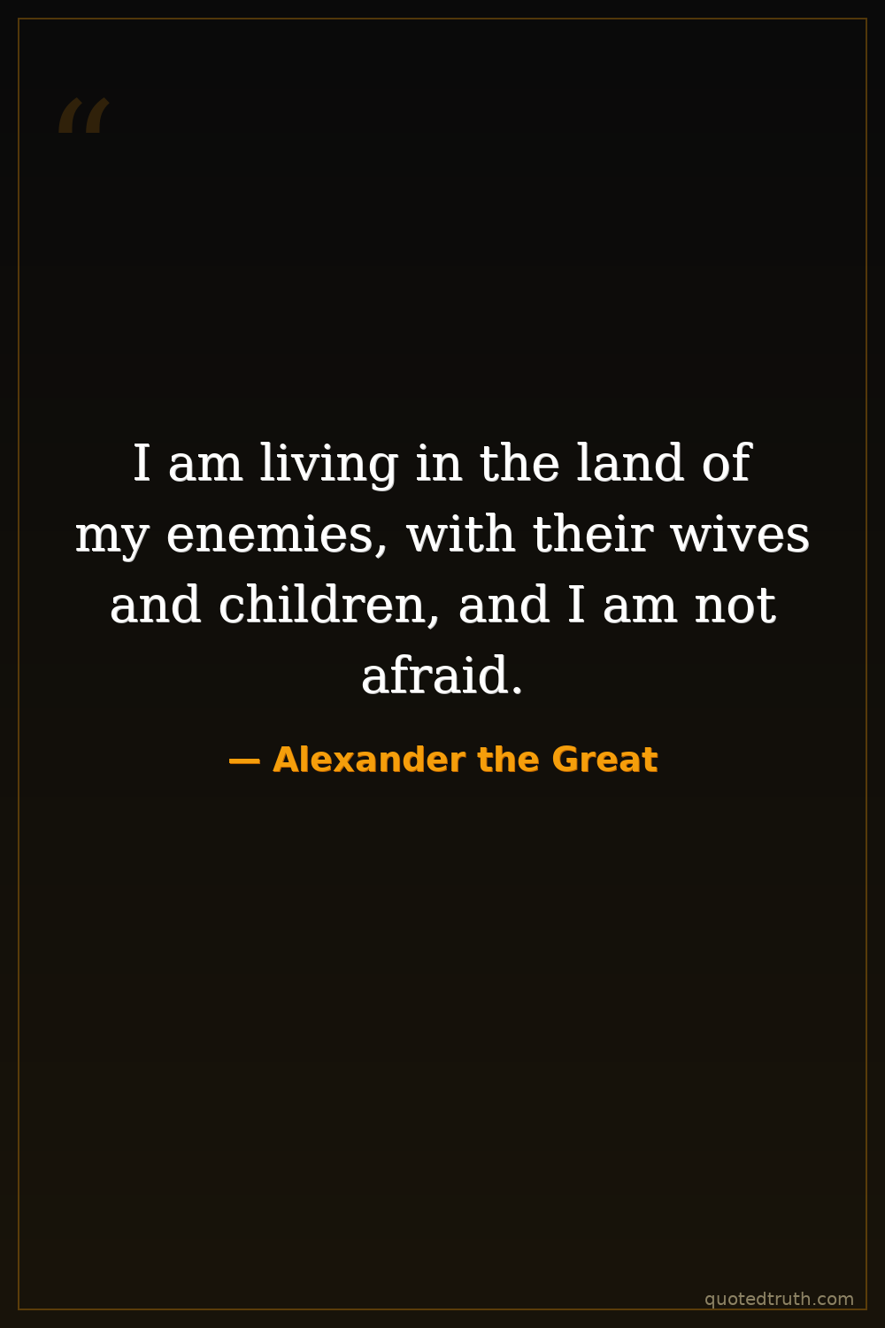 I am living in the land of my enemies, with their wives and children, and I am not afraid.