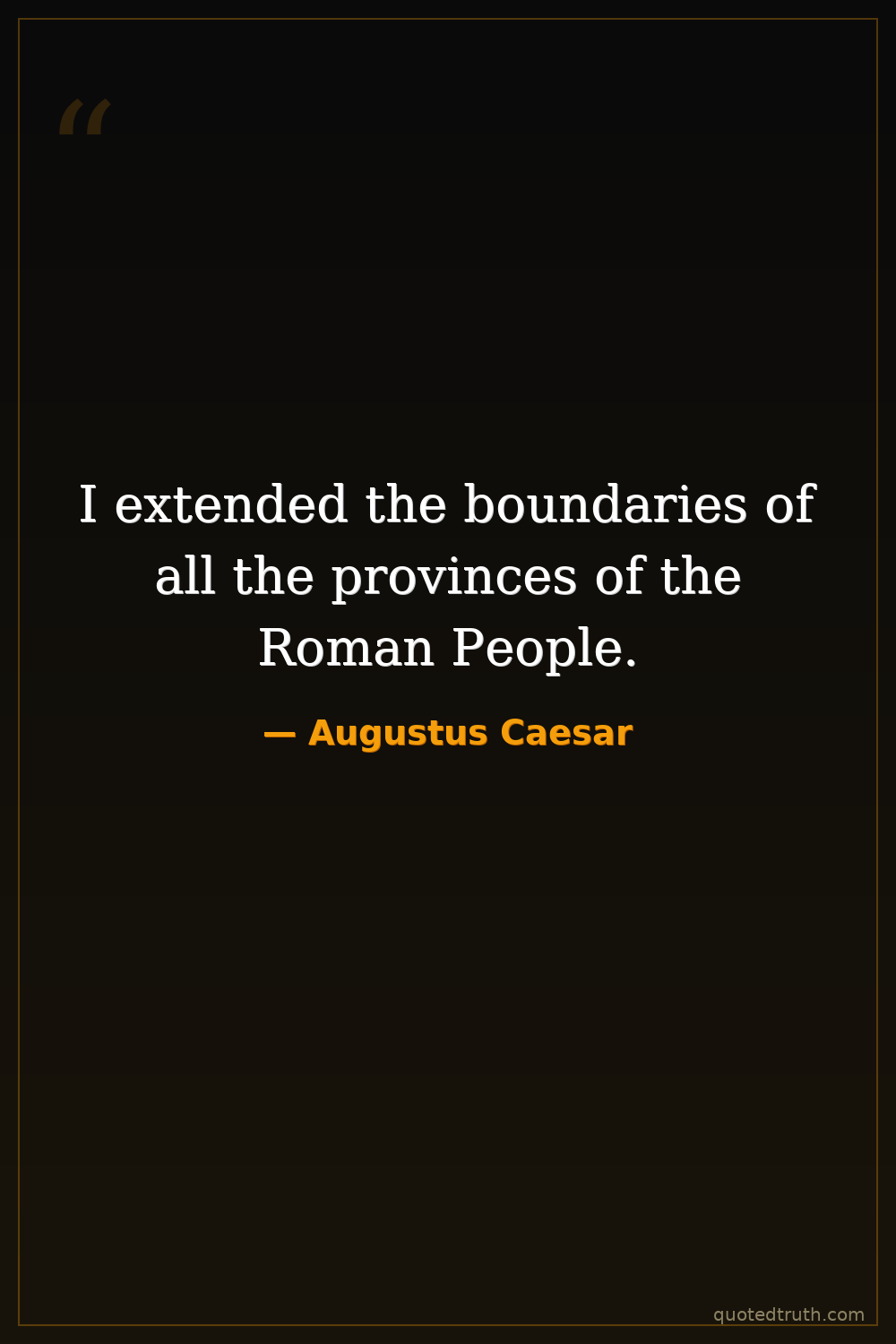 Shocking"I found the city of Rome, which was not adorned as her majesty demanded, to be too small for the empire; so I extended her borders."