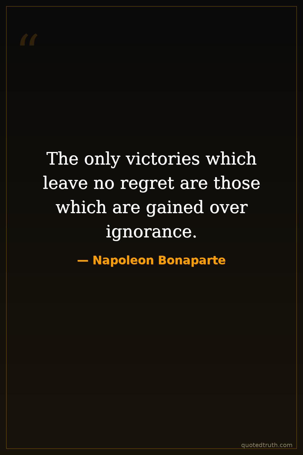 The only victories which leave no regret are those which are gained over ignorance.