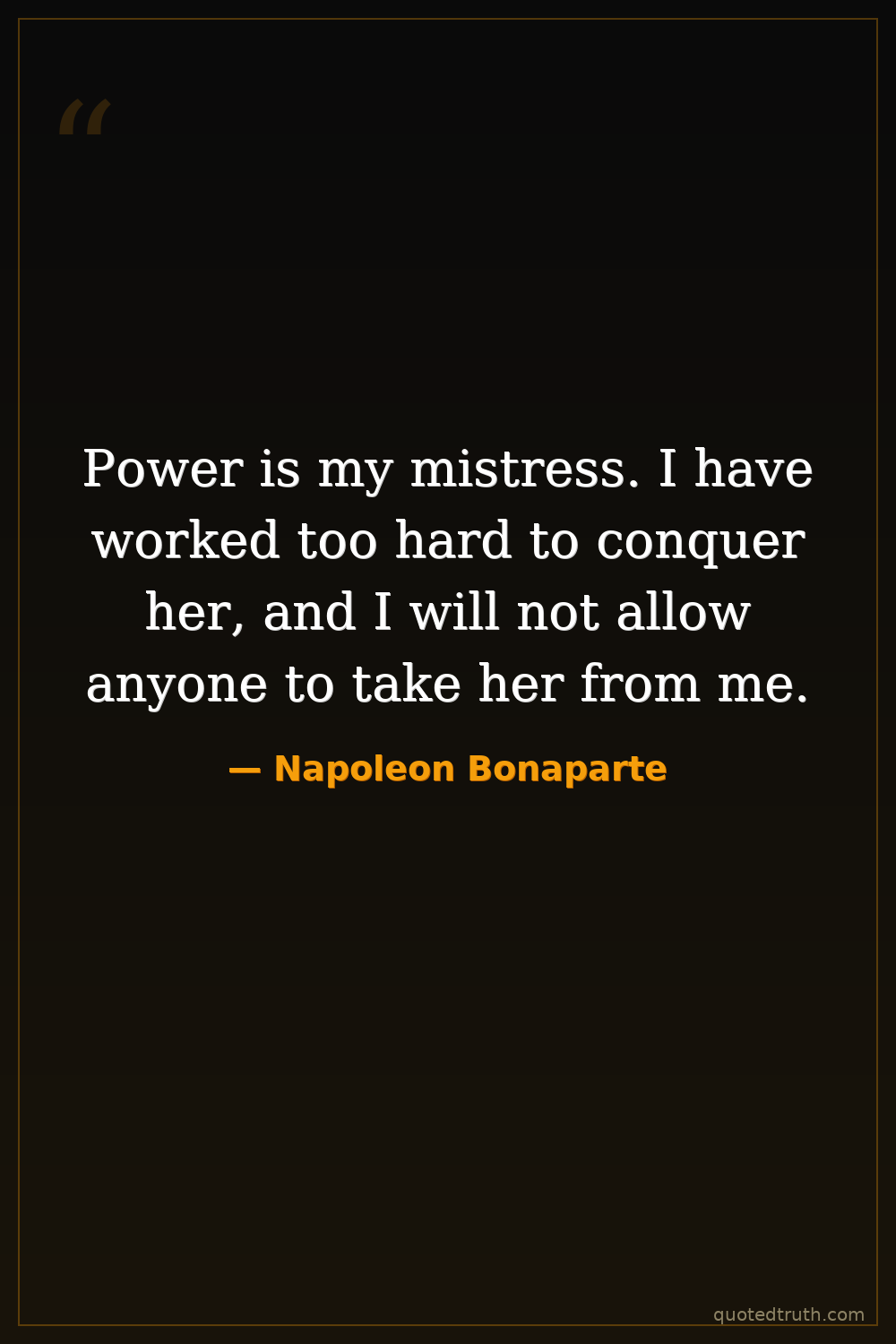 Power is my mistress. I have worked too hard to conquer her, and I will not allow anyone to take her from me.