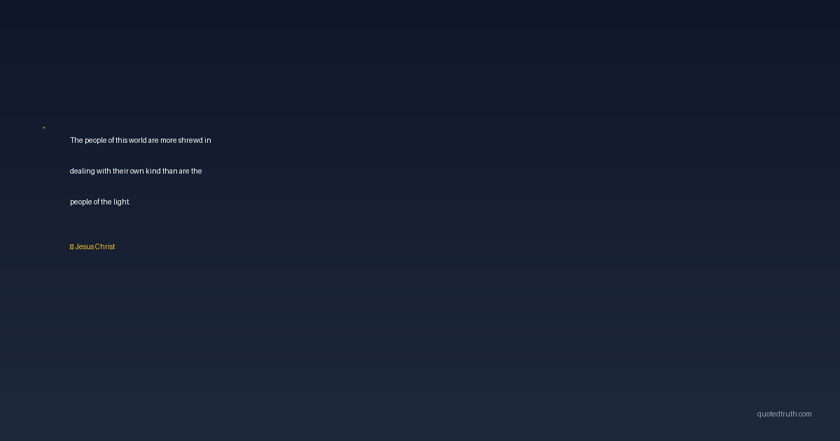 The people of this world are more shrewd in dealing with their own kind than are the people of the light.