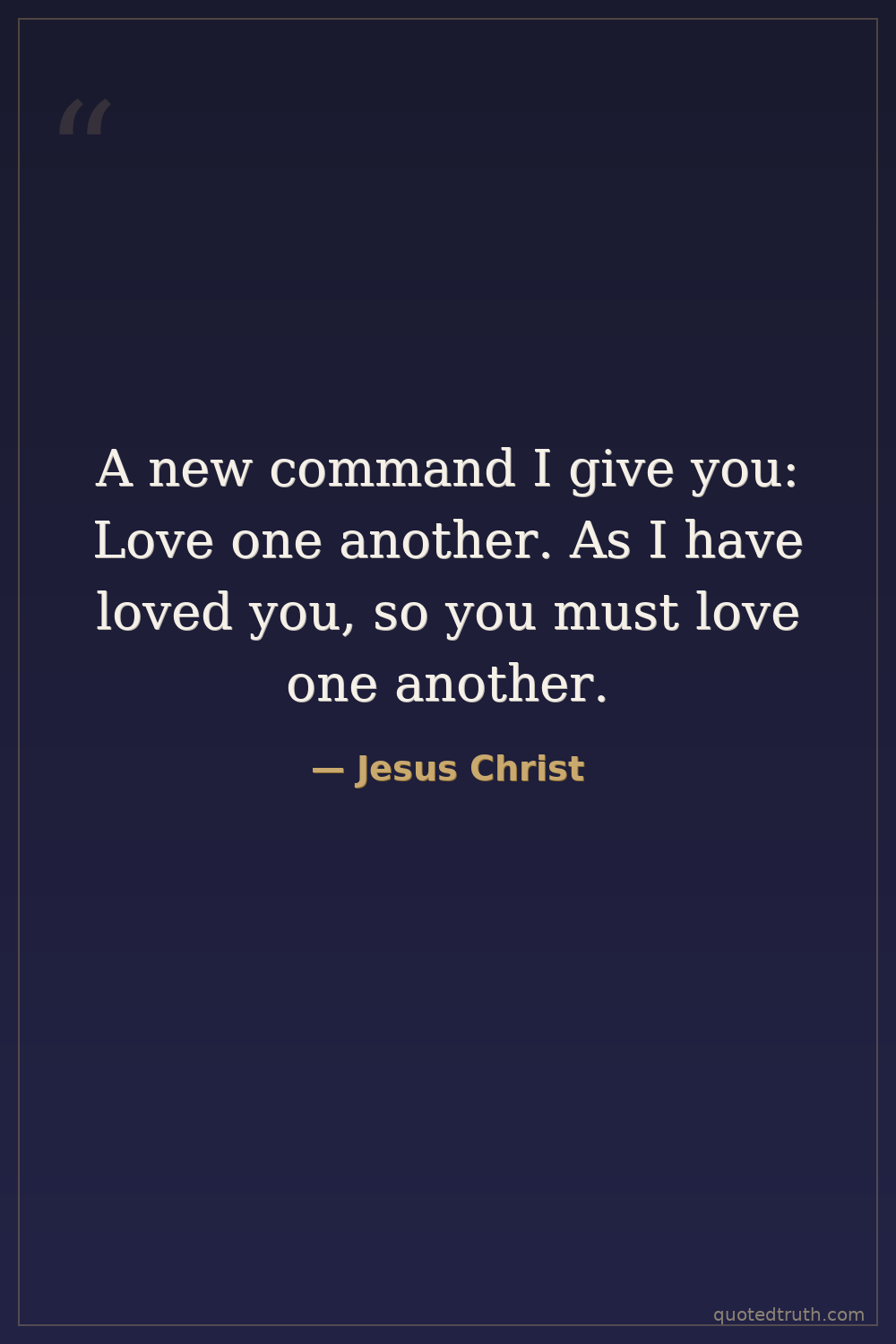 A new command I give you: Love one another. As I have loved you, so you must love one another.