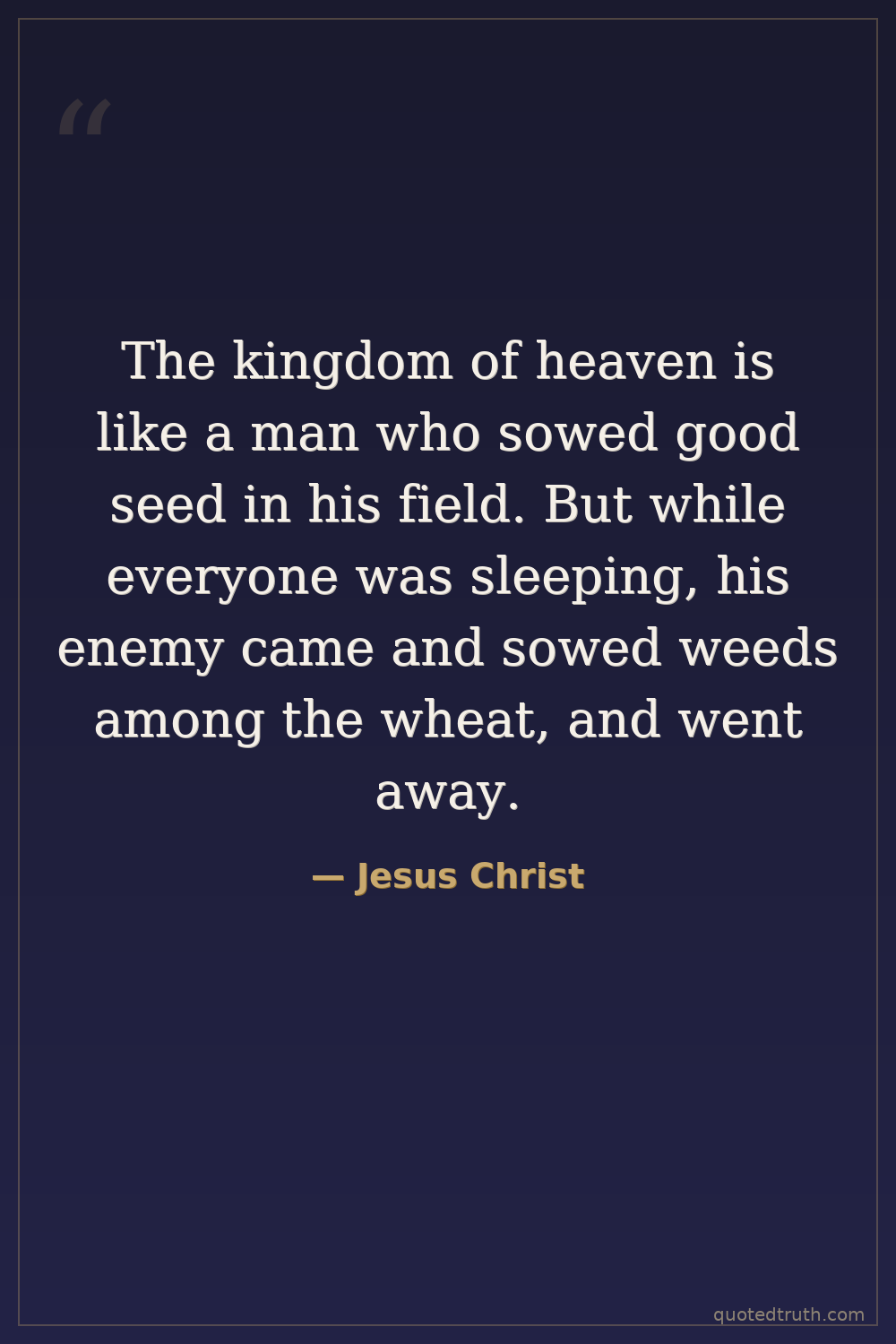 The kingdom of heaven is like a man who sowed good seed in his field. But while everyone was sleeping, his enemy came and sowed weeds among the wheat, and went away.