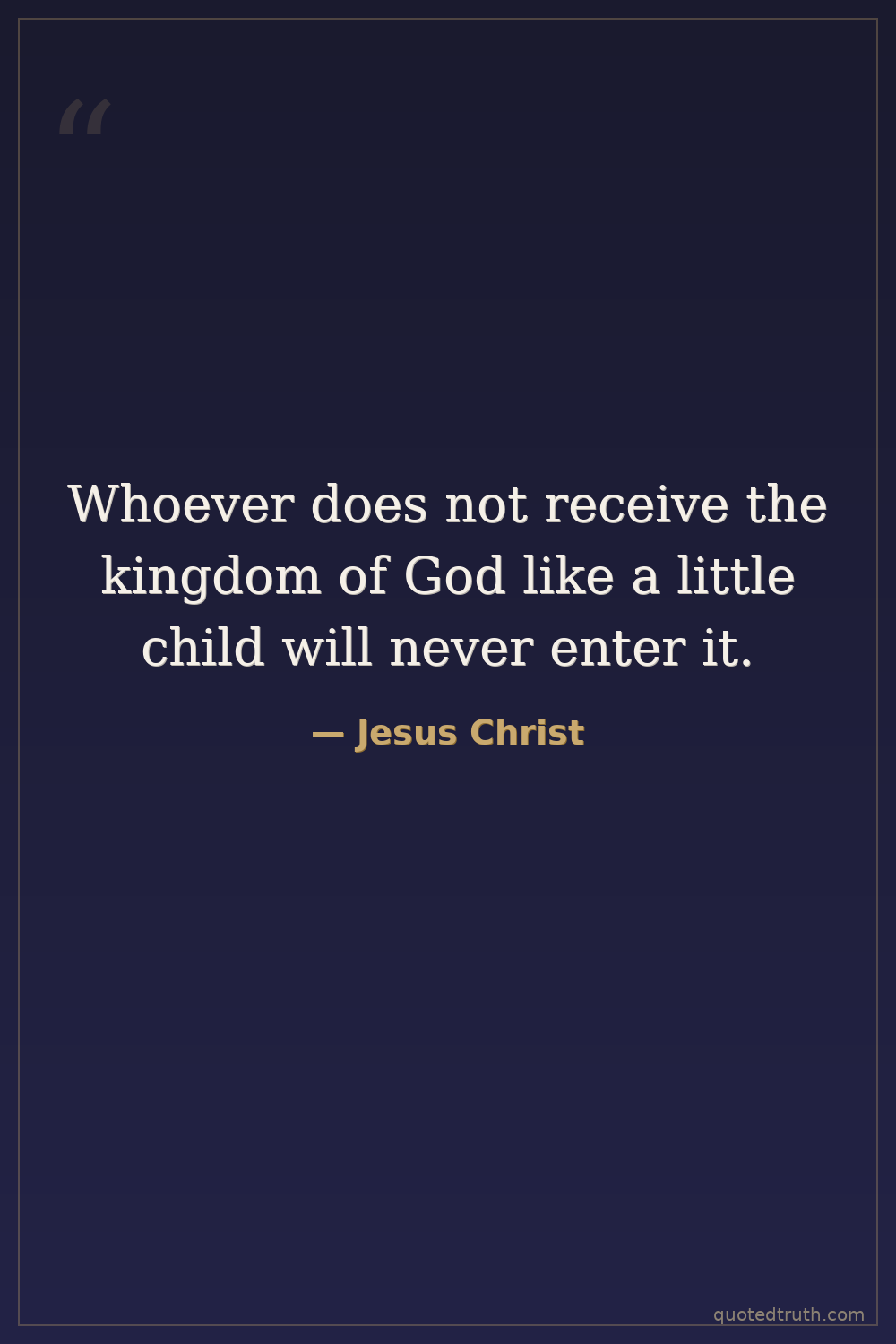 Whoever does not receive the kingdom of God like a little child will never enter it.