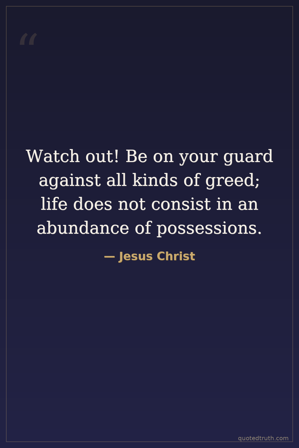Watch out! Be on your guard against all kinds of greed; life does not consist in an abundance of possessions.