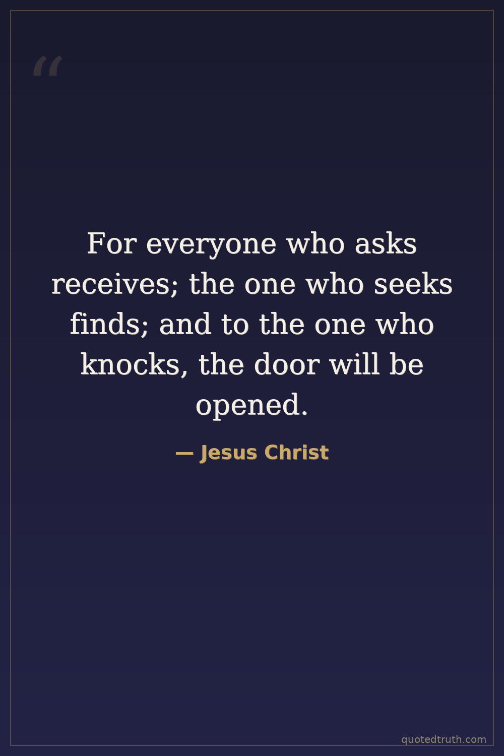 For everyone who asks receives; the one who seeks finds; and to the one who knocks, the door will be opened.