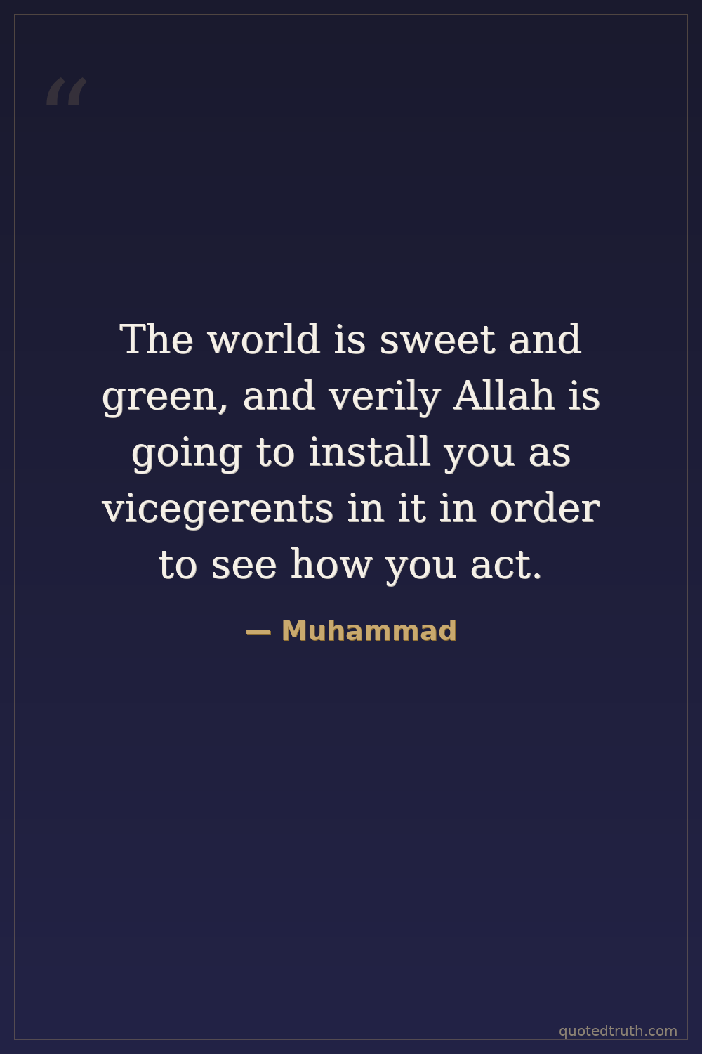 The world is sweet and green, and verily Allah is going to install you as vicegerents in it in order to see how you act.