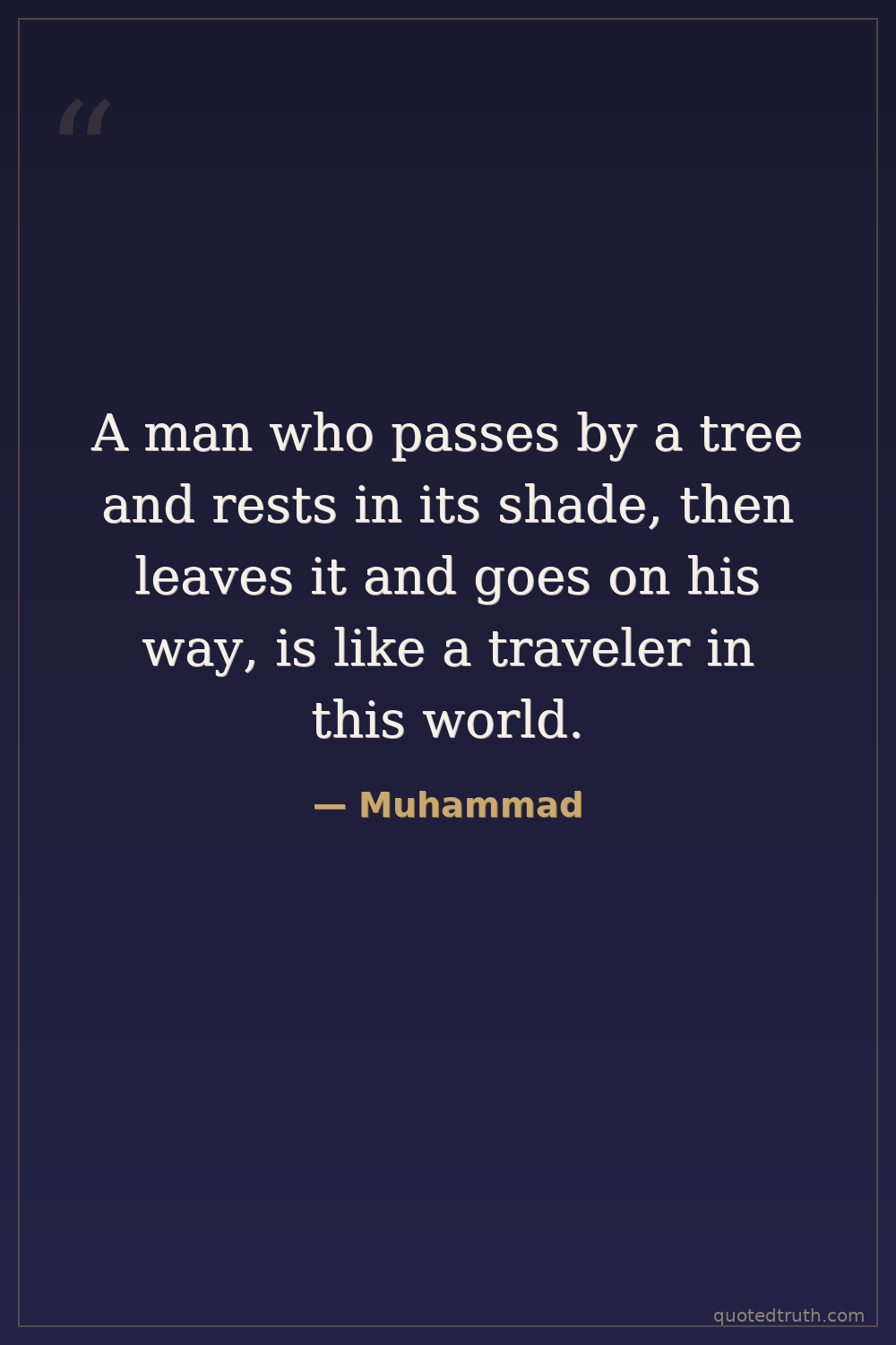 A man who passes by a tree and rests in its shade, then leaves it and goes on his way, is like a traveler in this world.