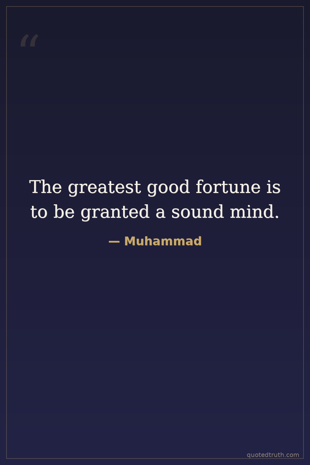 The greatest good fortune is to be granted a sound mind.