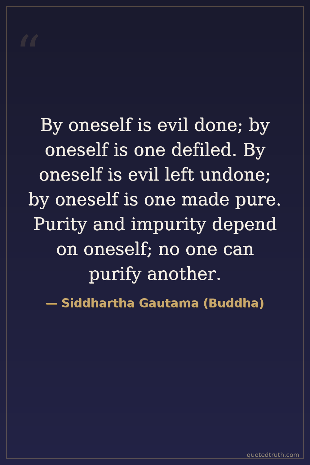 By oneself is evil done; by oneself is one defiled. By oneself is evil left undone; by oneself is one made pure. Purity and impurity depend on oneself; no one can purify another.