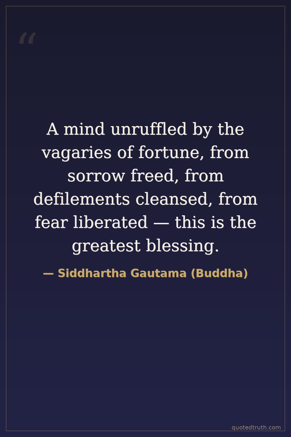 A mind unruffled by the vagaries of fortune, from sorrow freed, from defilements cleansed, from fear liberated — this is the greatest blessing.
