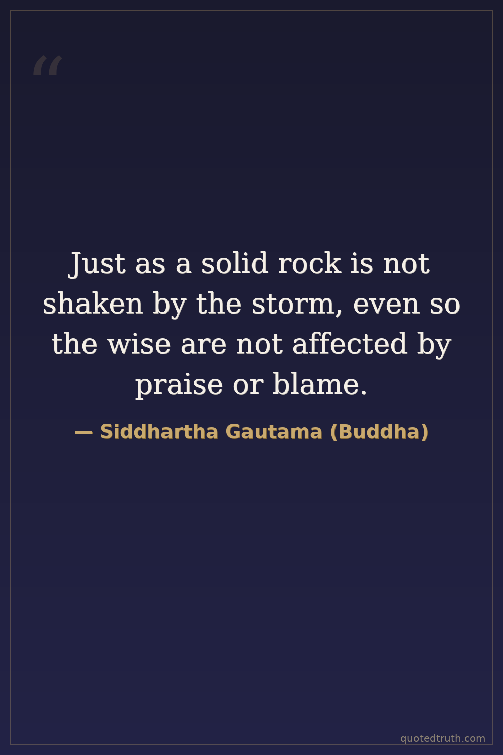 Just as a solid rock is not shaken by the storm, even so the wise are not affected by praise or blame.
