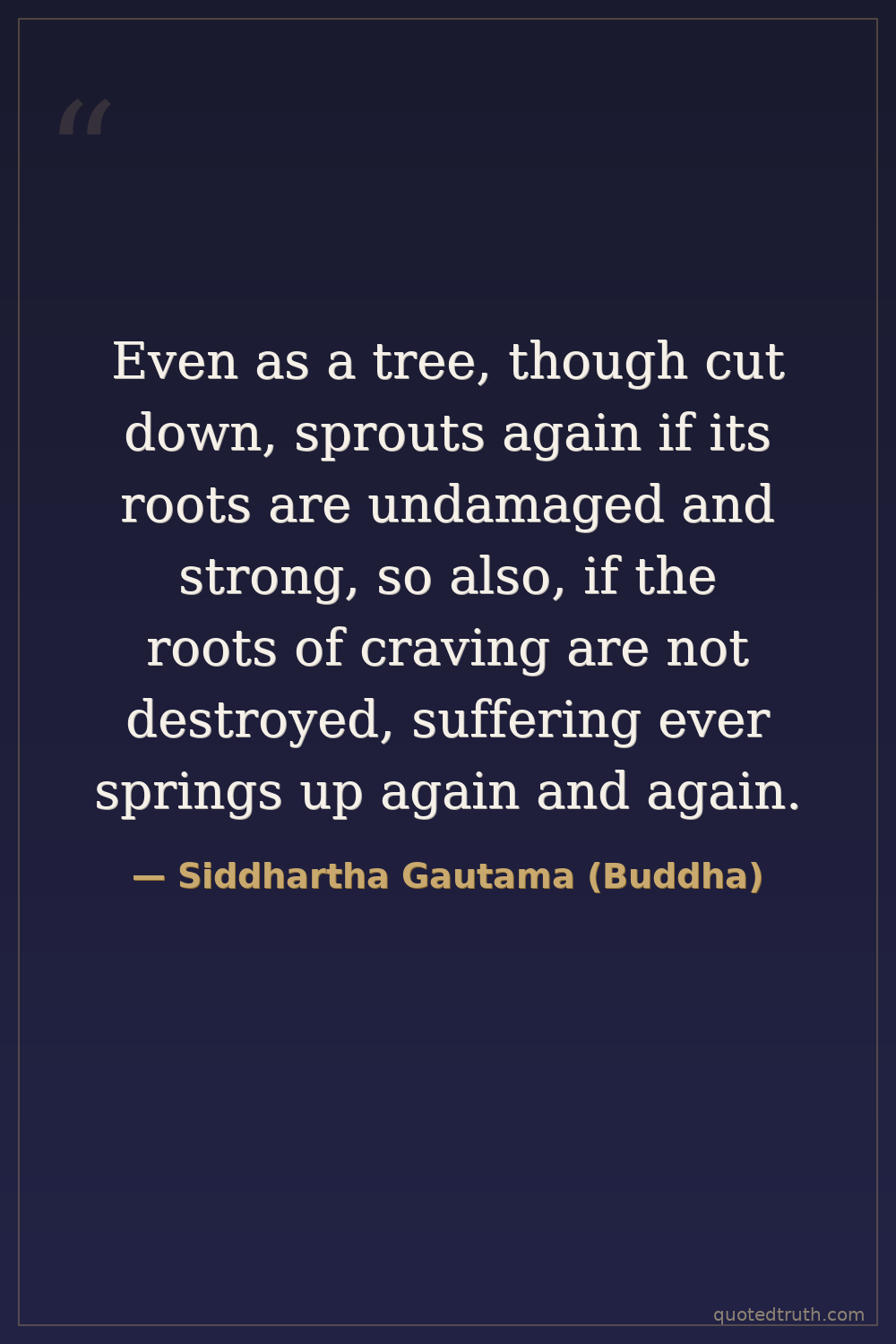 Even as a tree, though cut down, sprouts again if its roots are undamaged and strong, so also, if the roots of craving are not destroyed, suffering ever springs up again and again.