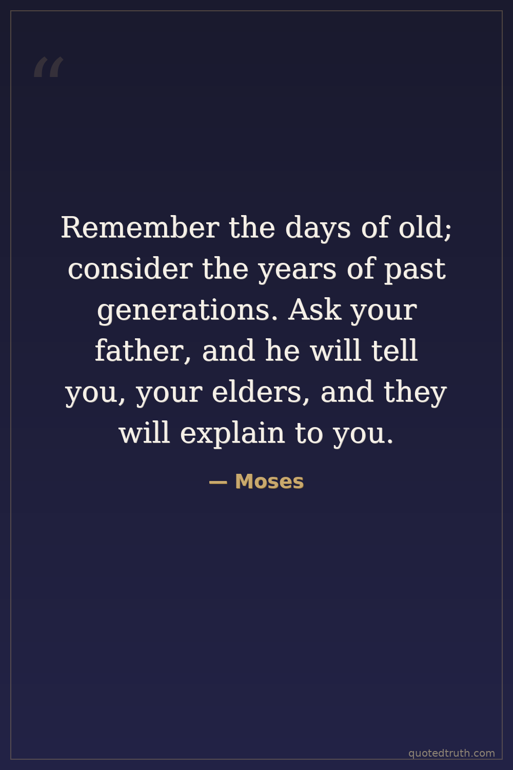 Remember the days of old; consider the years of past generations. Ask your father, and he will tell you, your elders, and they will explain to you.