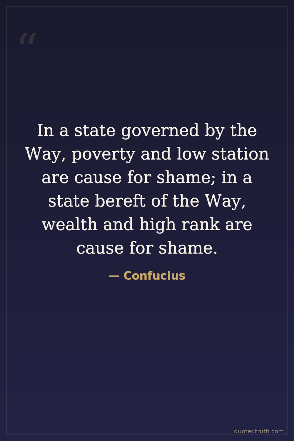 In a state governed by the Way, poverty and low station are cause for shame; in a state bereft of the Way, wealth and high rank are cause for shame.