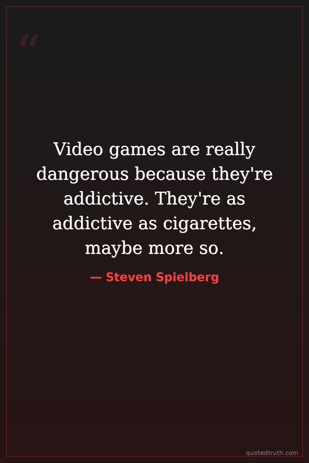 Video games are really dangerous because they're addictive. They're as addictive as cigarettes, maybe more so.