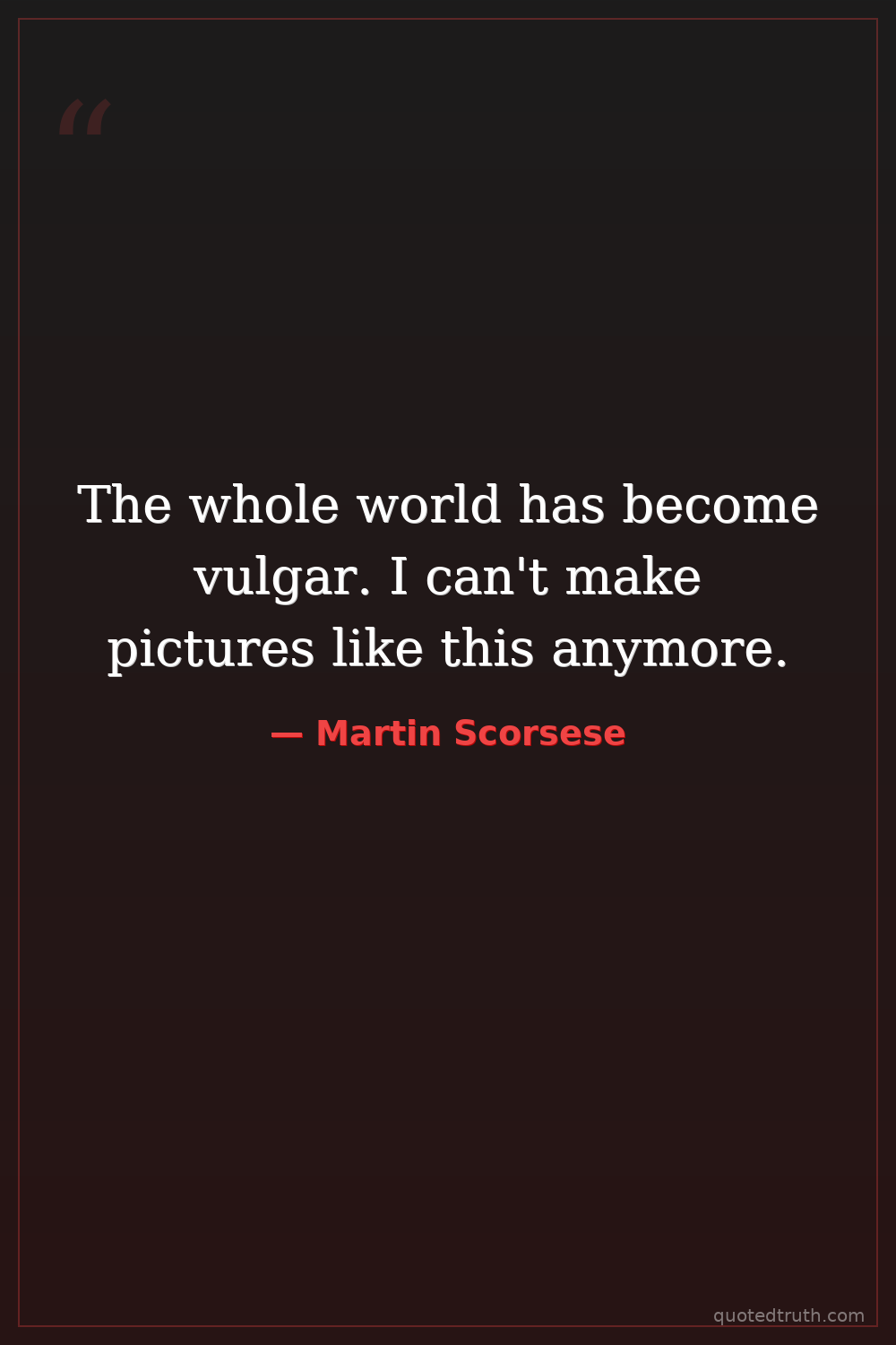 The whole world has become vulgar. I can't make pictures like this anymore.