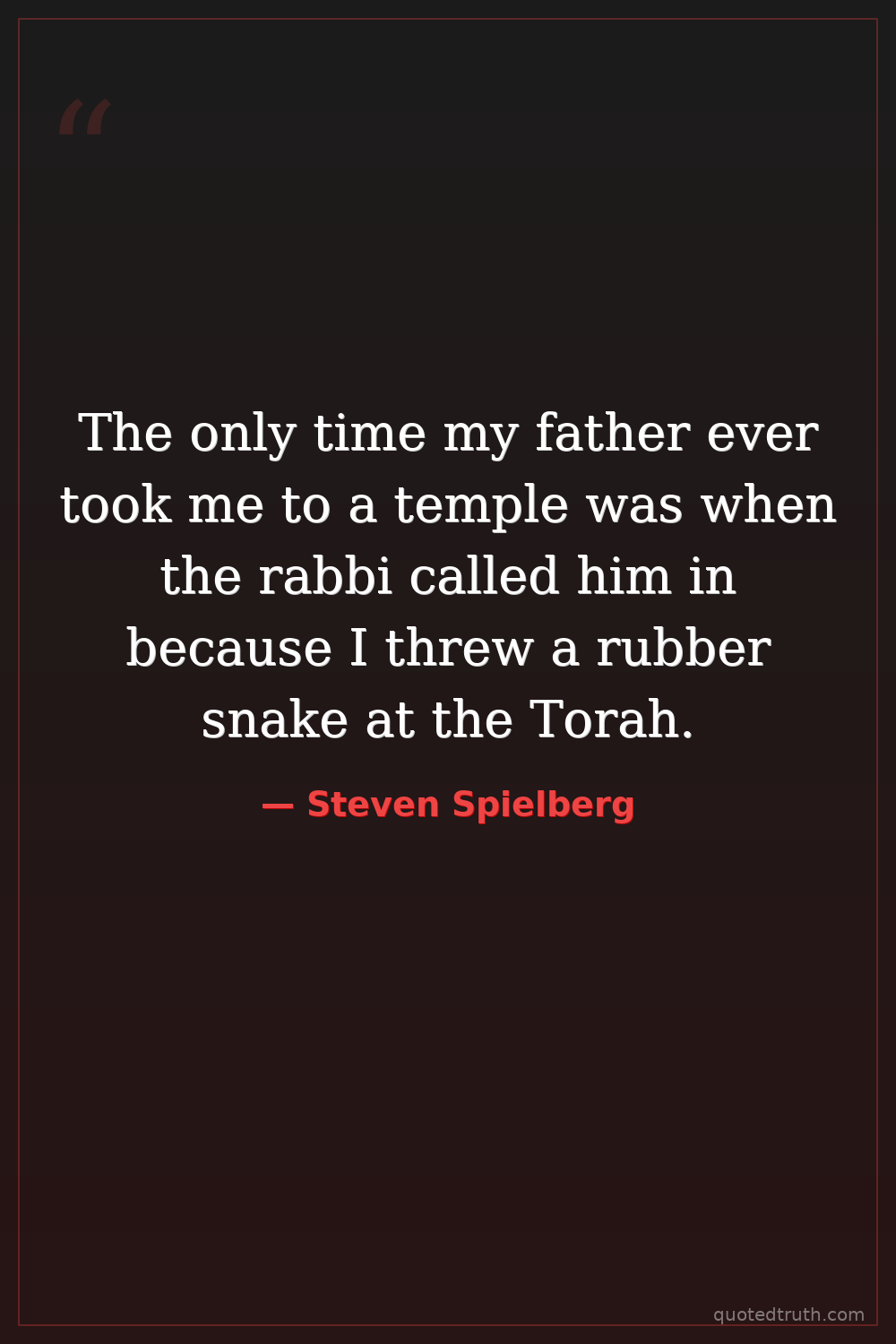 The only time my father ever took me to a temple was when the rabbi called him in because I threw a rubber snake at the Torah.