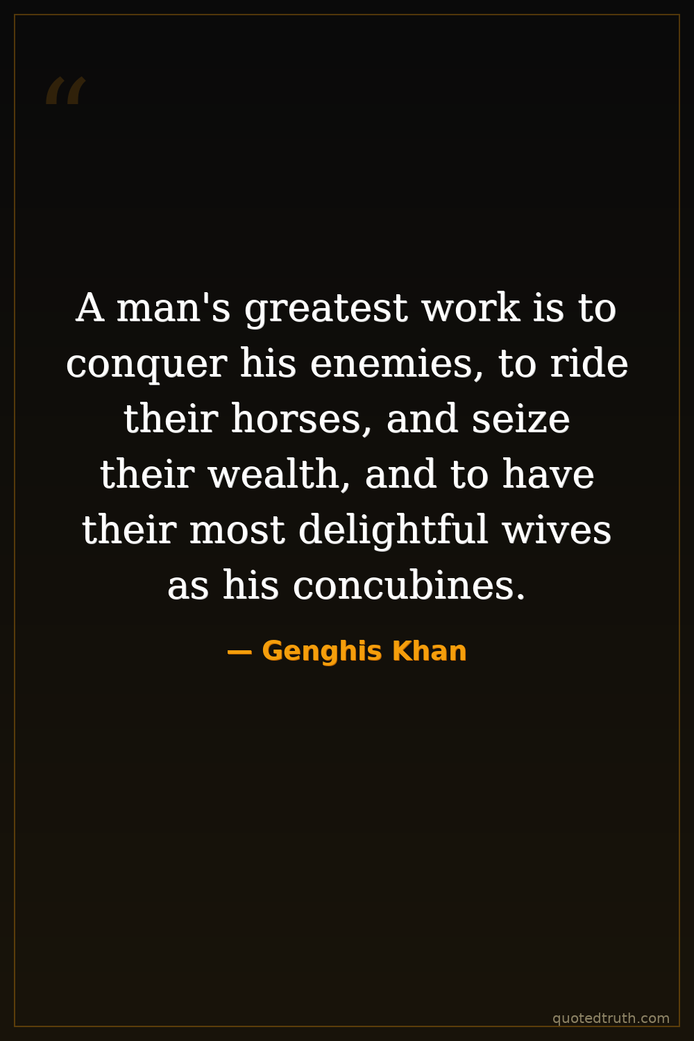 A man's greatest work is to conquer his enemies, to ride their horses, and seize their wealth, and to have their most delightful wives as his concubines.