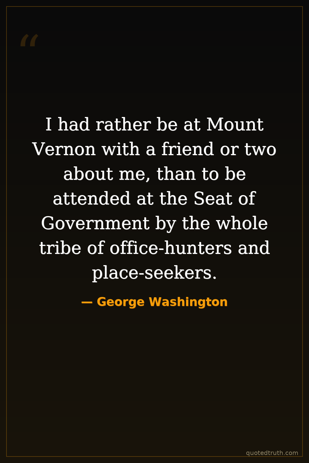 I had rather be at Mount Vernon with a friend or two about me, than to be attended at the Seat of Government by the whole tribe of office-hunters and place-seekers.