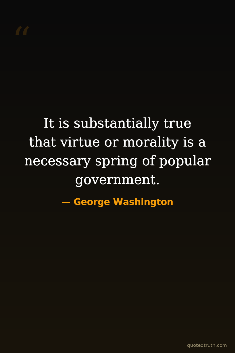It is substantially true that virtue or morality is a necessary spring of popular government.