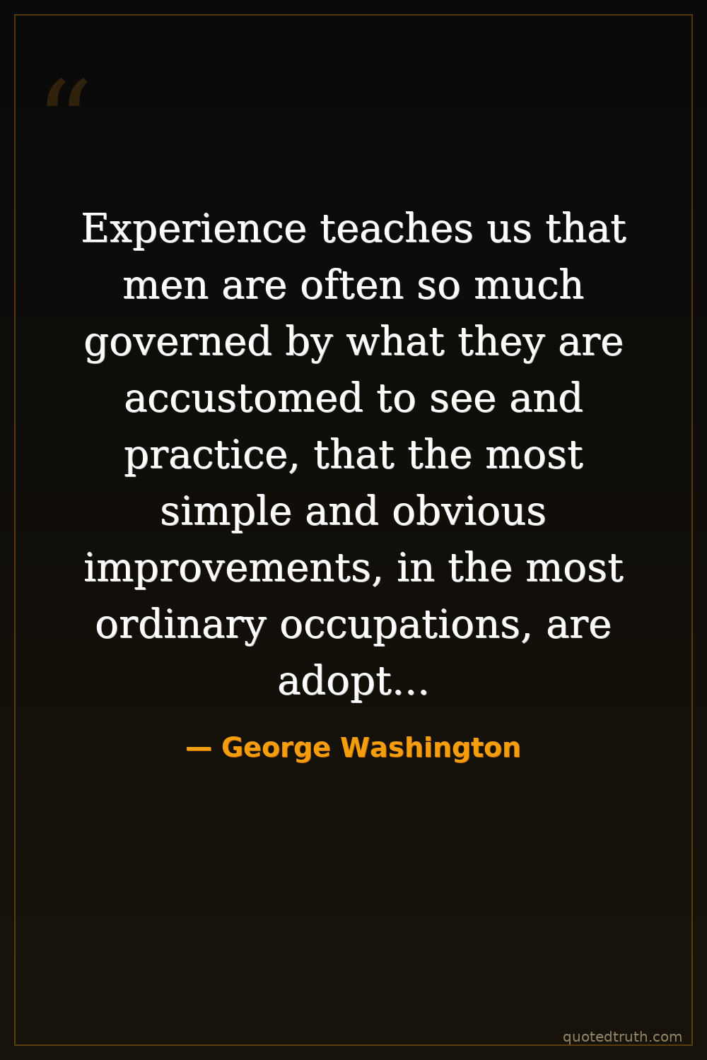 Experience teaches us that men are often so much governed by what they are accustomed to see and practice, that the most simple and obvious improvements, in the most ordinary occupations, are adopted with hesitation, reluctance, and by slow gradations.