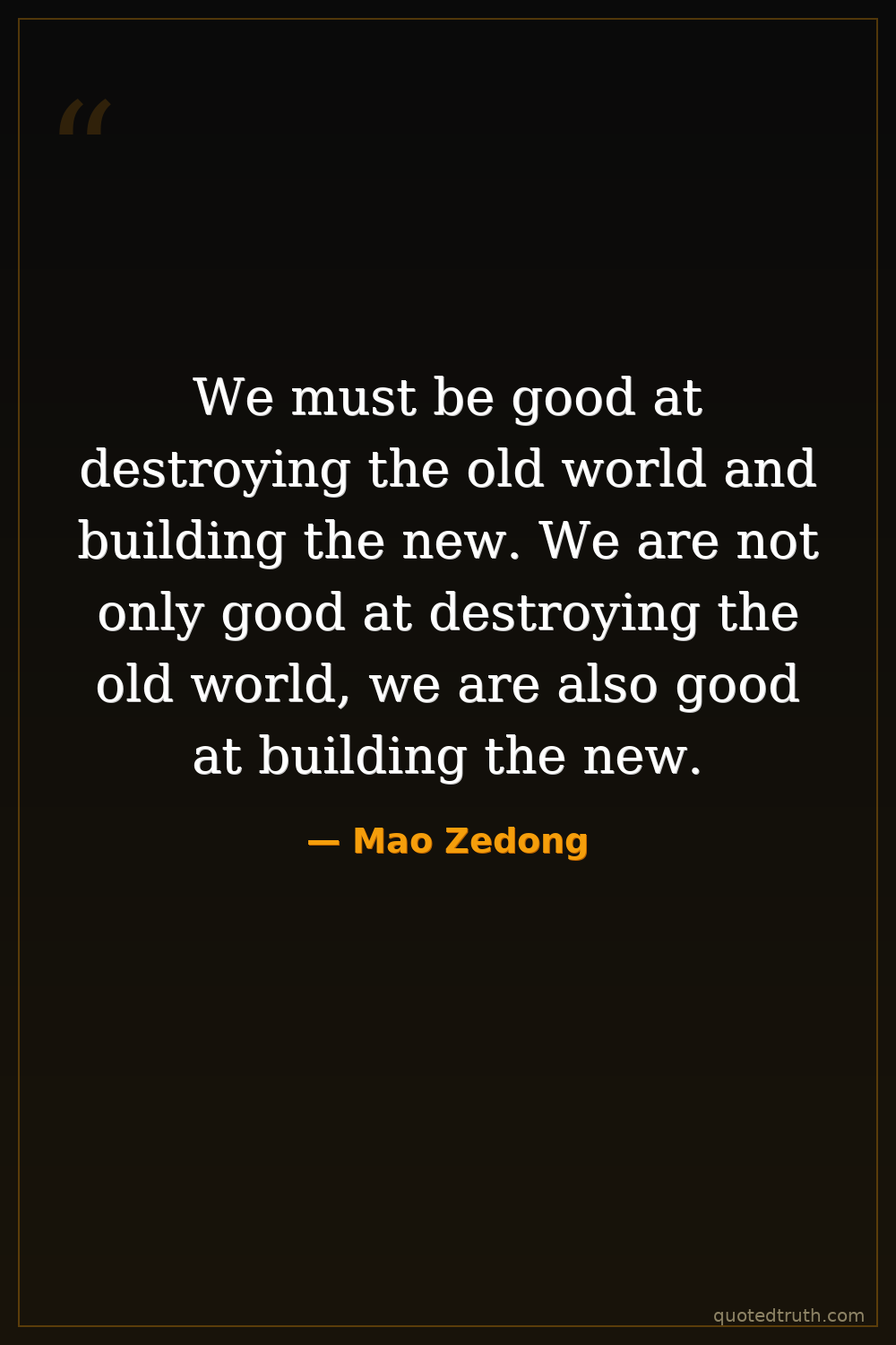 We must be good at destroying the old world and building the new. We are not only good at destroying the old world, we are also good at building the new.