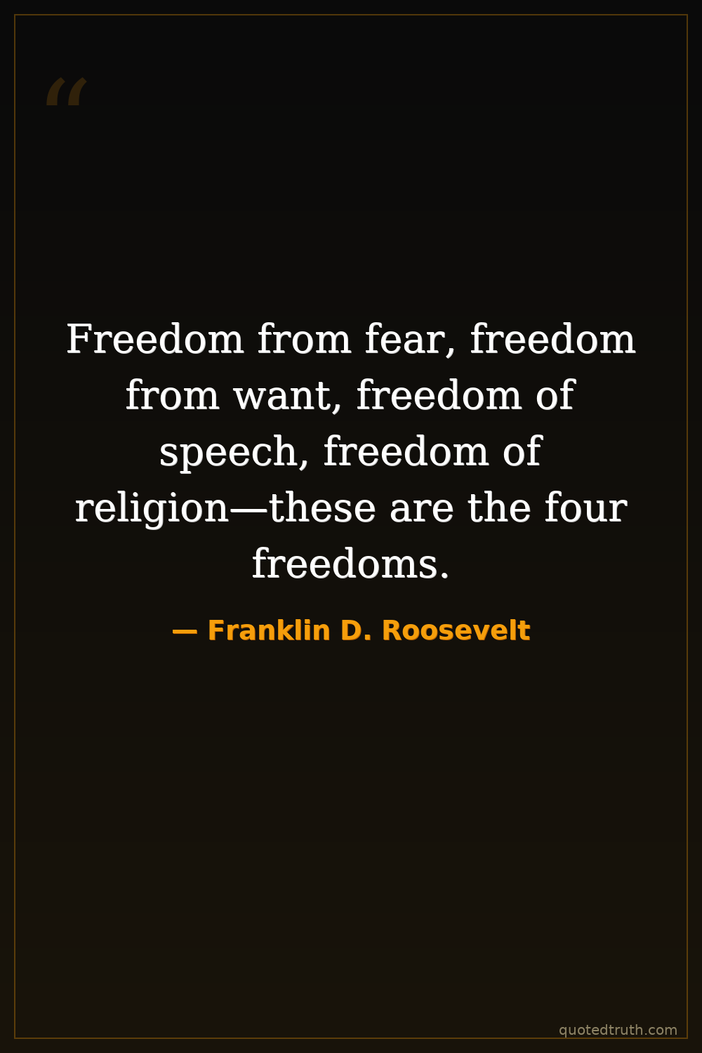 Freedom from fear, freedom from want, freedom of speech, freedom of religion—these are the four freedoms.