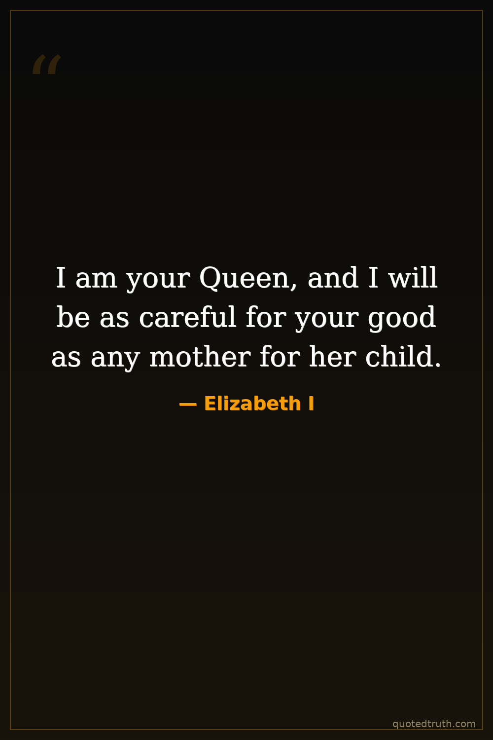 I am your Queen, and I will be as careful for your good as any mother for her child.