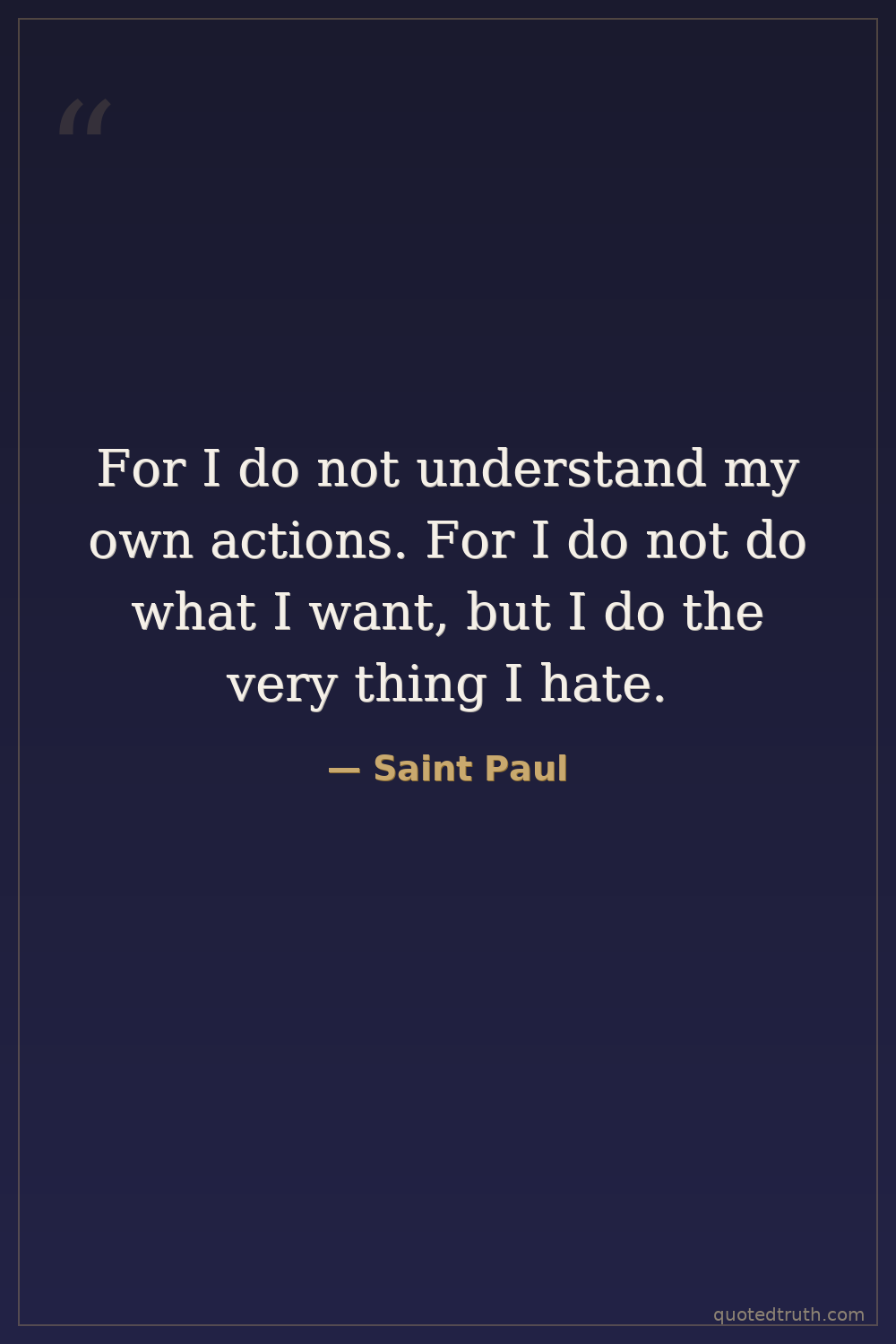 For I do not understand my own actions. For I do not do what I want, but I do the very thing I hate.