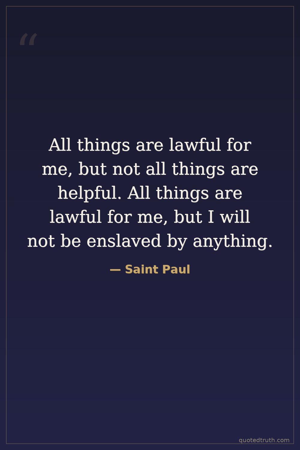 All things are lawful for me, but not all things are helpful. All things are lawful for me, but I will not be enslaved by anything.