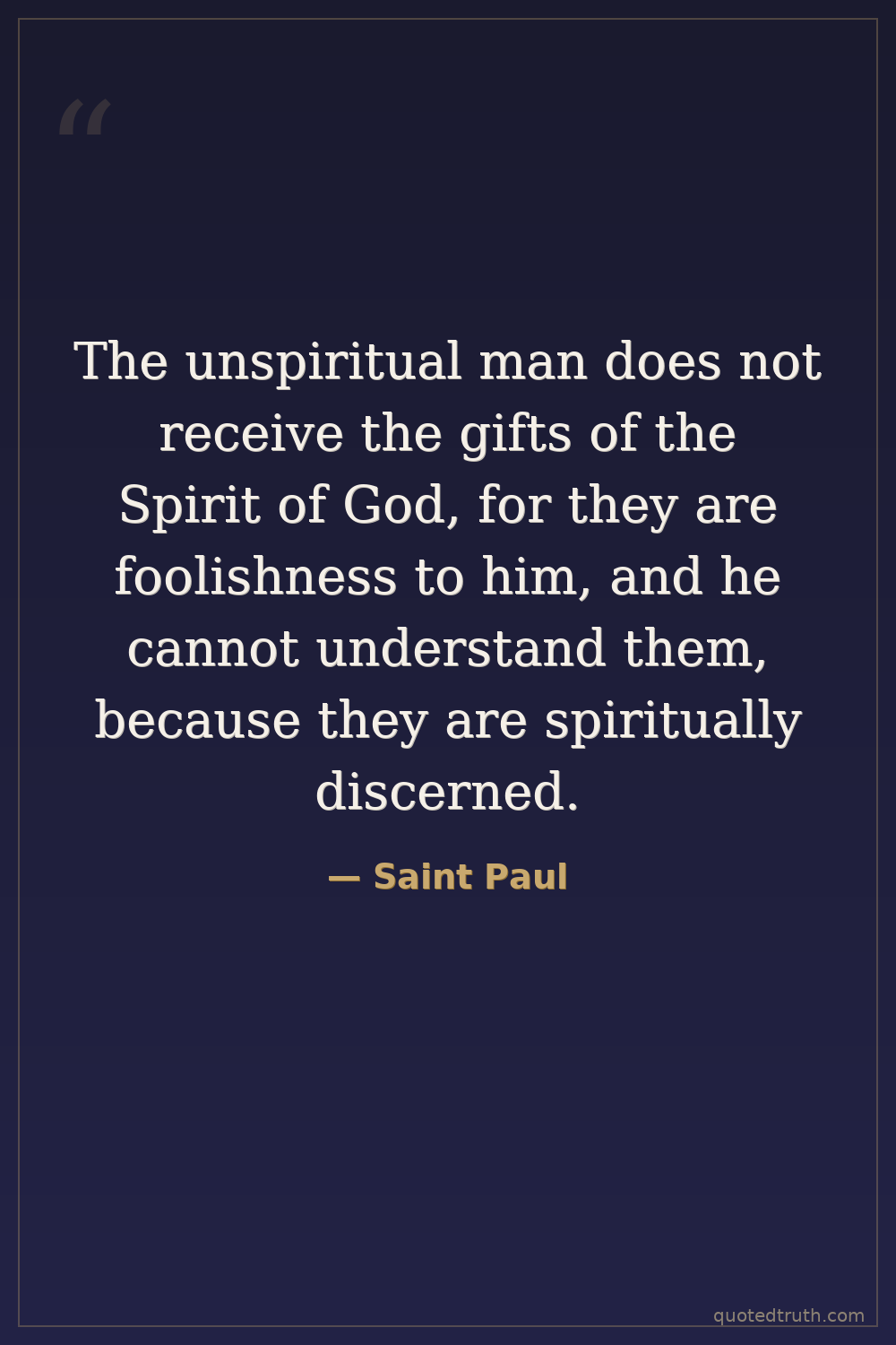 The unspiritual man does not receive the gifts of the Spirit of God, for they are foolishness to him, and he cannot understand them, because they are spiritually discerned.