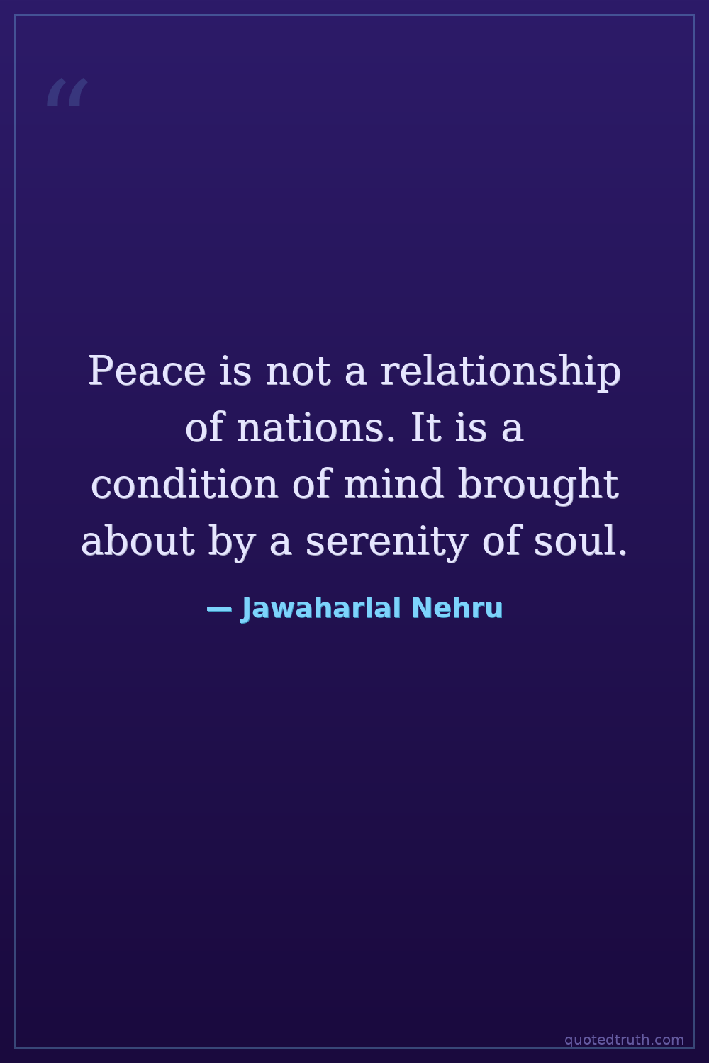 Peace is not a relationship of nations. It is a condition of mind brought about by a serenity of soul.