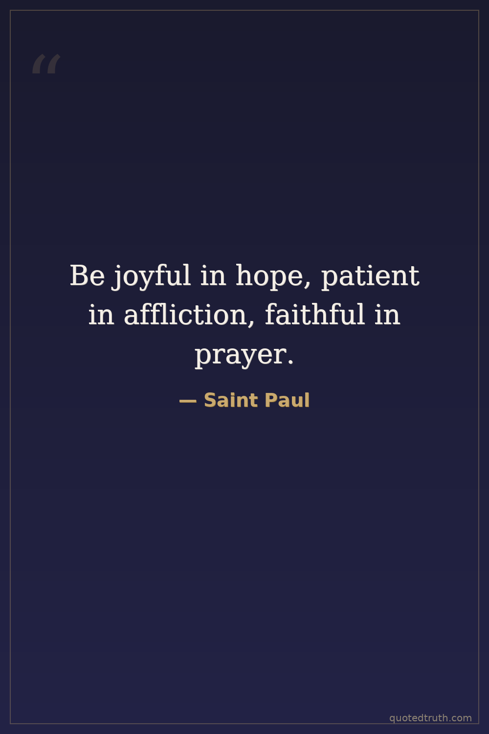 Be joyful in hope, patient in affliction, faithful in prayer.