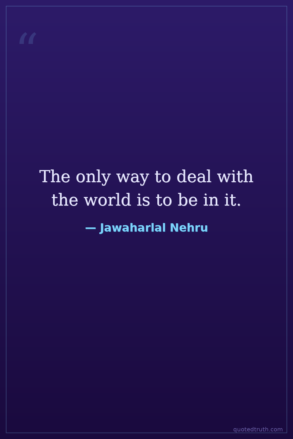 The only way to deal with the world is to be in it.