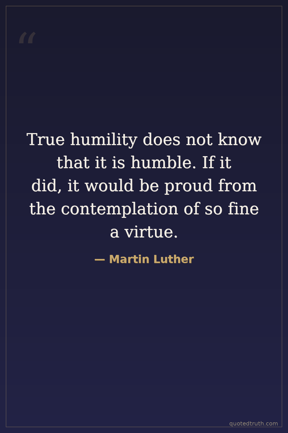 True humility does not know that it is humble. If it did, it would be proud from the contemplation of so fine a virtue.