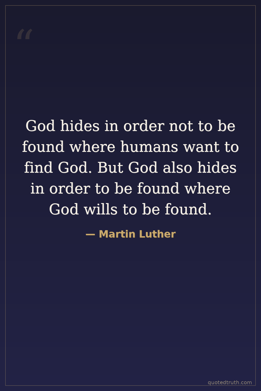 God hides in order not to be found where humans want to find God. But God also hides in order to be found where God wills to be found.