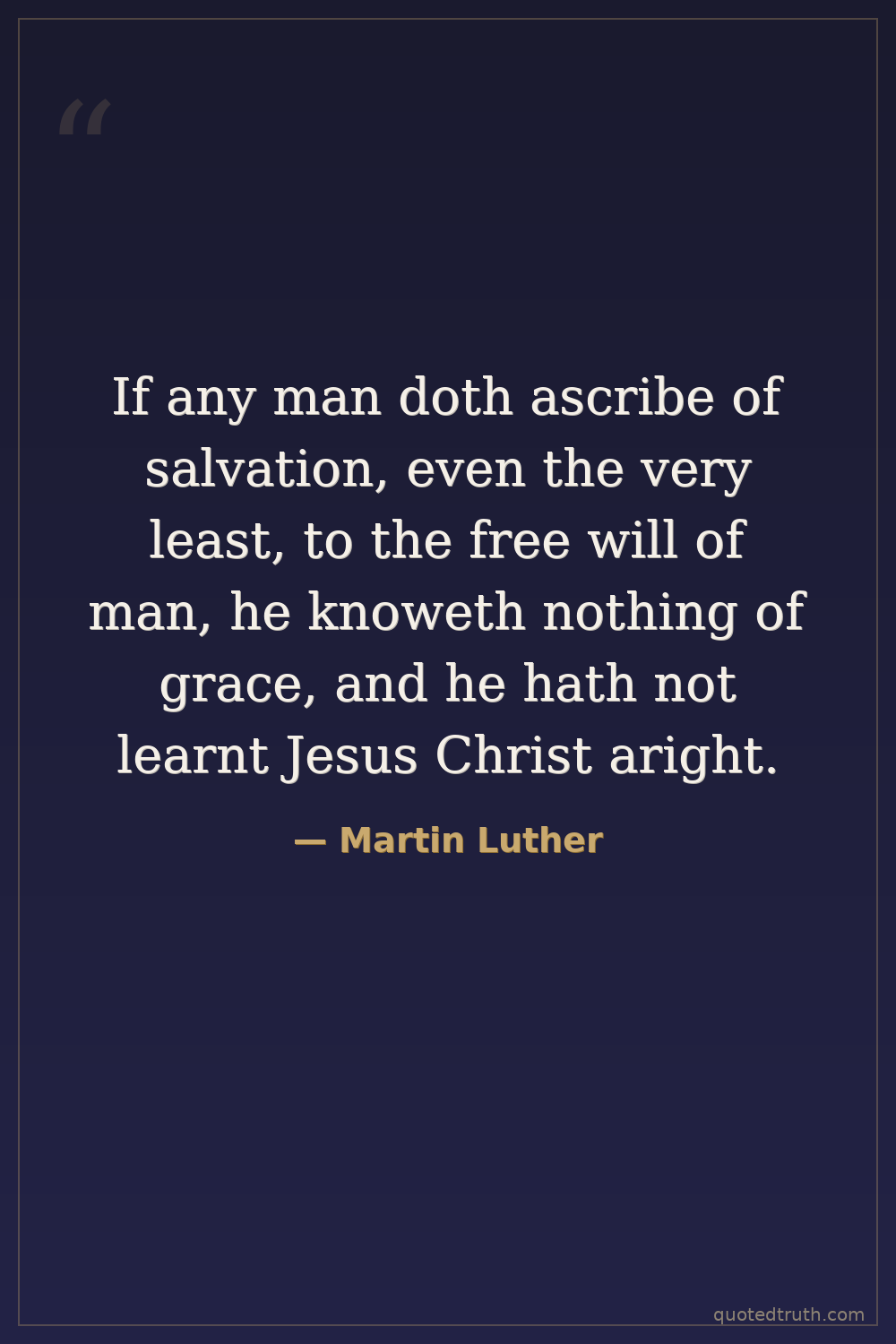 If any man doth ascribe of salvation, even the very least, to the free will of man, he knoweth nothing of grace, and he hath not learnt Jesus Christ aright.