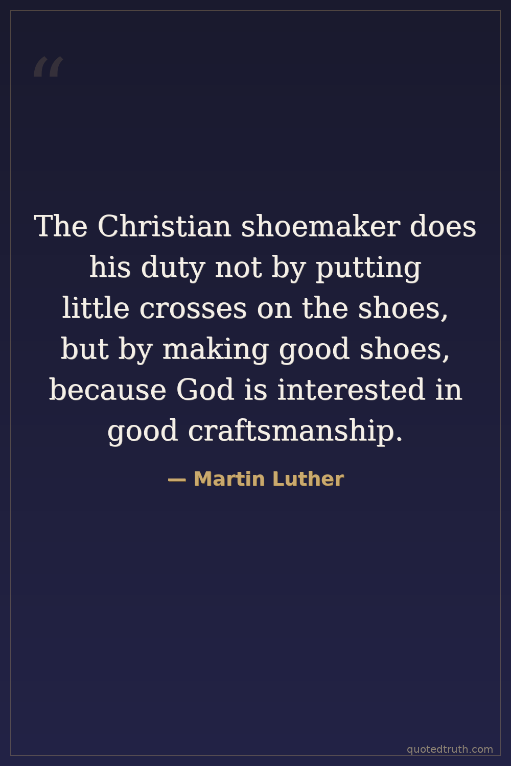 The Christian shoemaker does his duty not by putting little crosses on the shoes, but by making good shoes, because God is interested in good craftsmanship.
