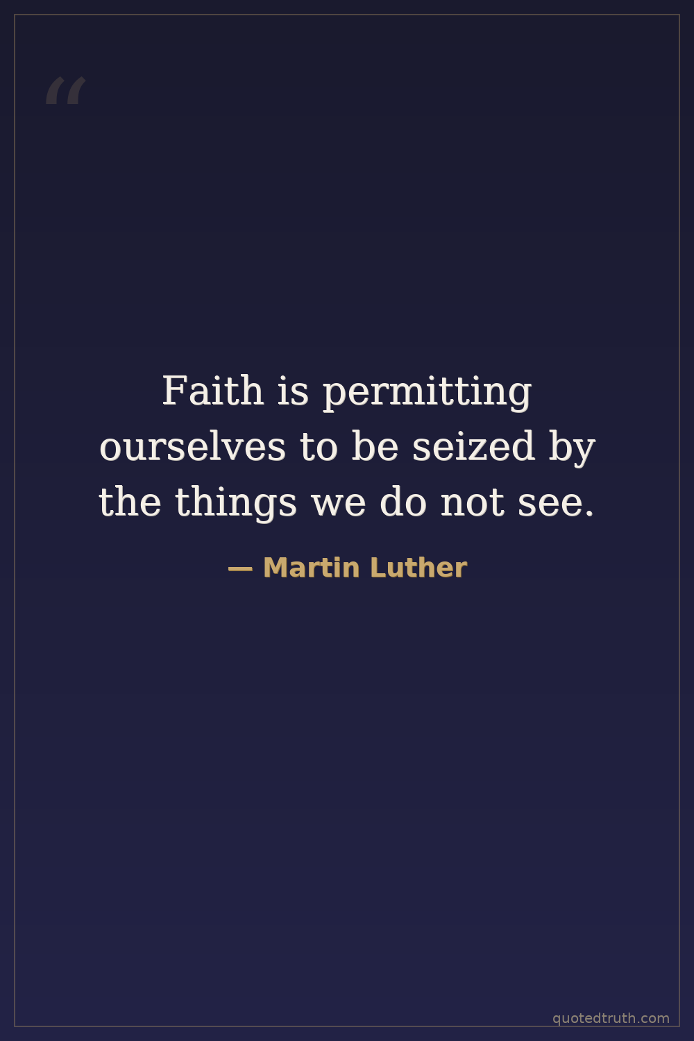 Faith is permitting ourselves to be seized by the things we do not see.
