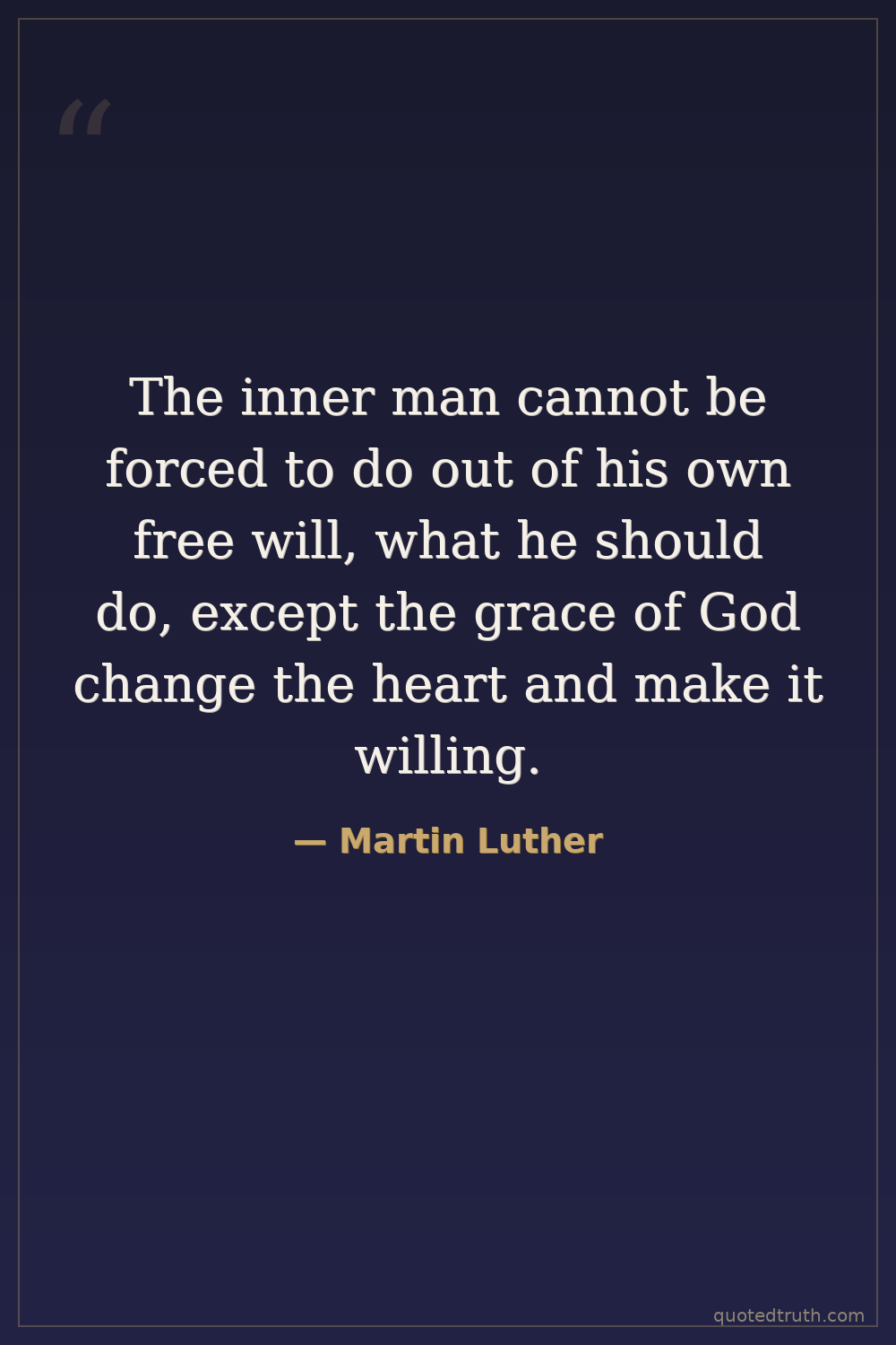 The inner man cannot be forced to do out of his own free will, what he should do, except the grace of God change the heart and make it willing.