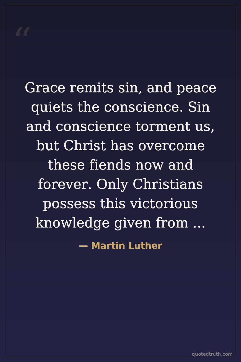 Grace remits sin, and peace quiets the conscience. Sin and conscience torment us, but Christ has overcome these fiends now and forever. Only Christians possess this victorious knowledge given from above.