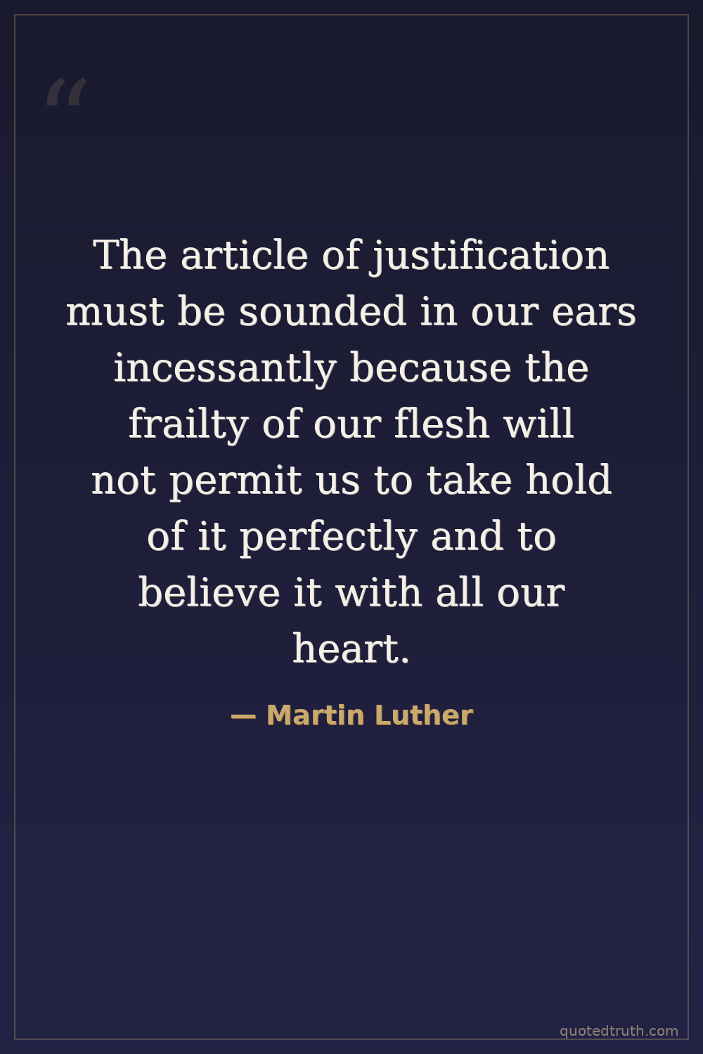 The article of justification must be sounded in our ears incessantly because the frailty of our flesh will not permit us to take hold of it perfectly and to believe it with all our heart.